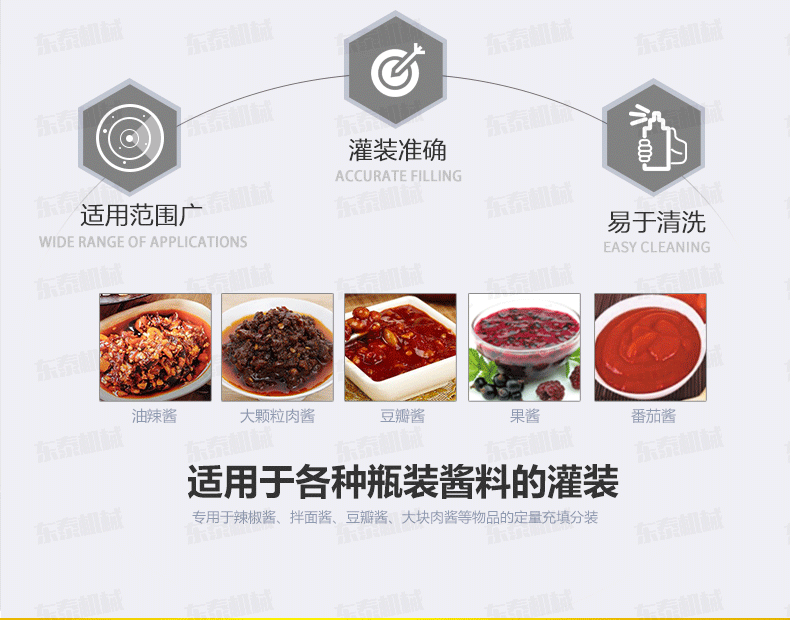 2、 醬料灌裝機設(shè)備全不銹鋼制作,衛(wèi)生、安全;