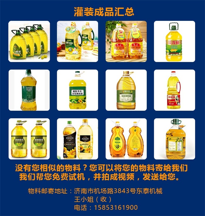 油類的選用是現(xiàn)在人們生活態(tài)度離不開的一種生活態(tài)度,即將來臨寒季油類的的使用將迎來了加強期,市場前景大幅度加強,一款食用油灌裝機的選用會給我們不一樣的新高度。合理的機器設(shè)備會給廠家提供截然不同的變化的,生產(chǎn)能力的加強,加強競爭優(yōu)勢等等自動式十二頭食用油灌裝機設(shè)備,該型號灌裝機選用流量計式計量灌裝原理,可用于各種規(guī)(1-5升)的南瓜籽油、榛子油、牡丹籽油、芝麻油、山茶油、亞麻籽油、棉籽油、橄欖油、大豆油、玉米油、菜籽油等食用油灌裝,一機多用,滿足了不同時期的行業(yè)對各種食用油的需求,