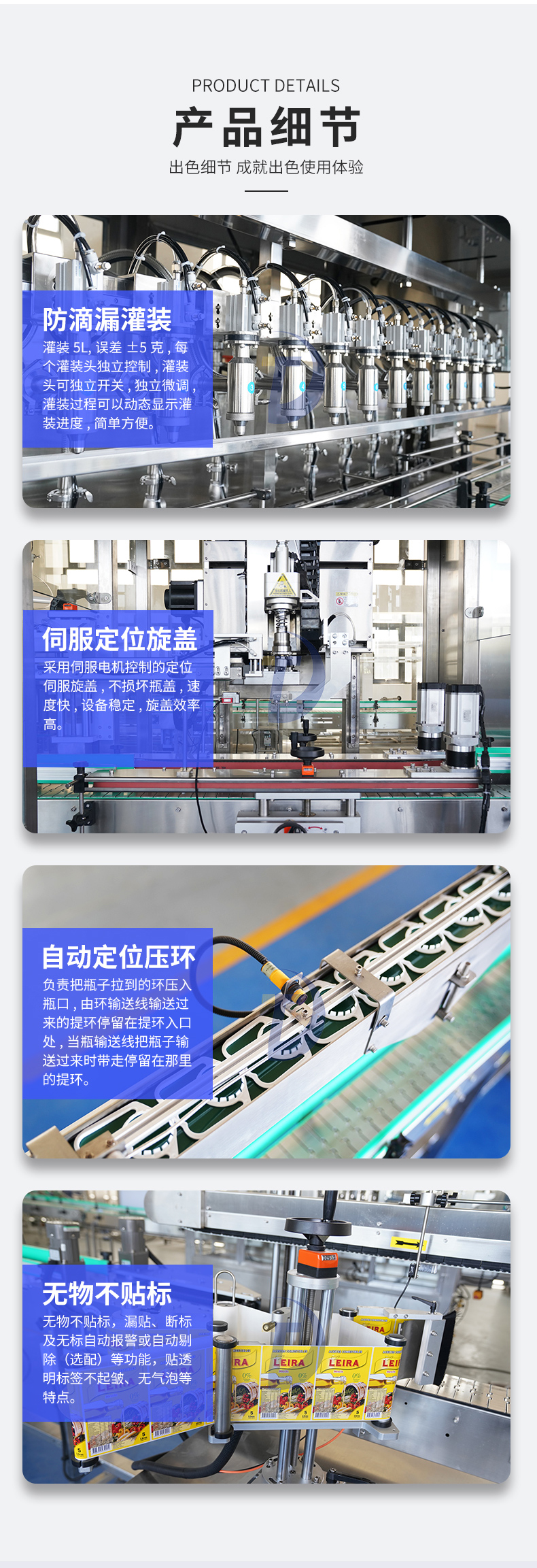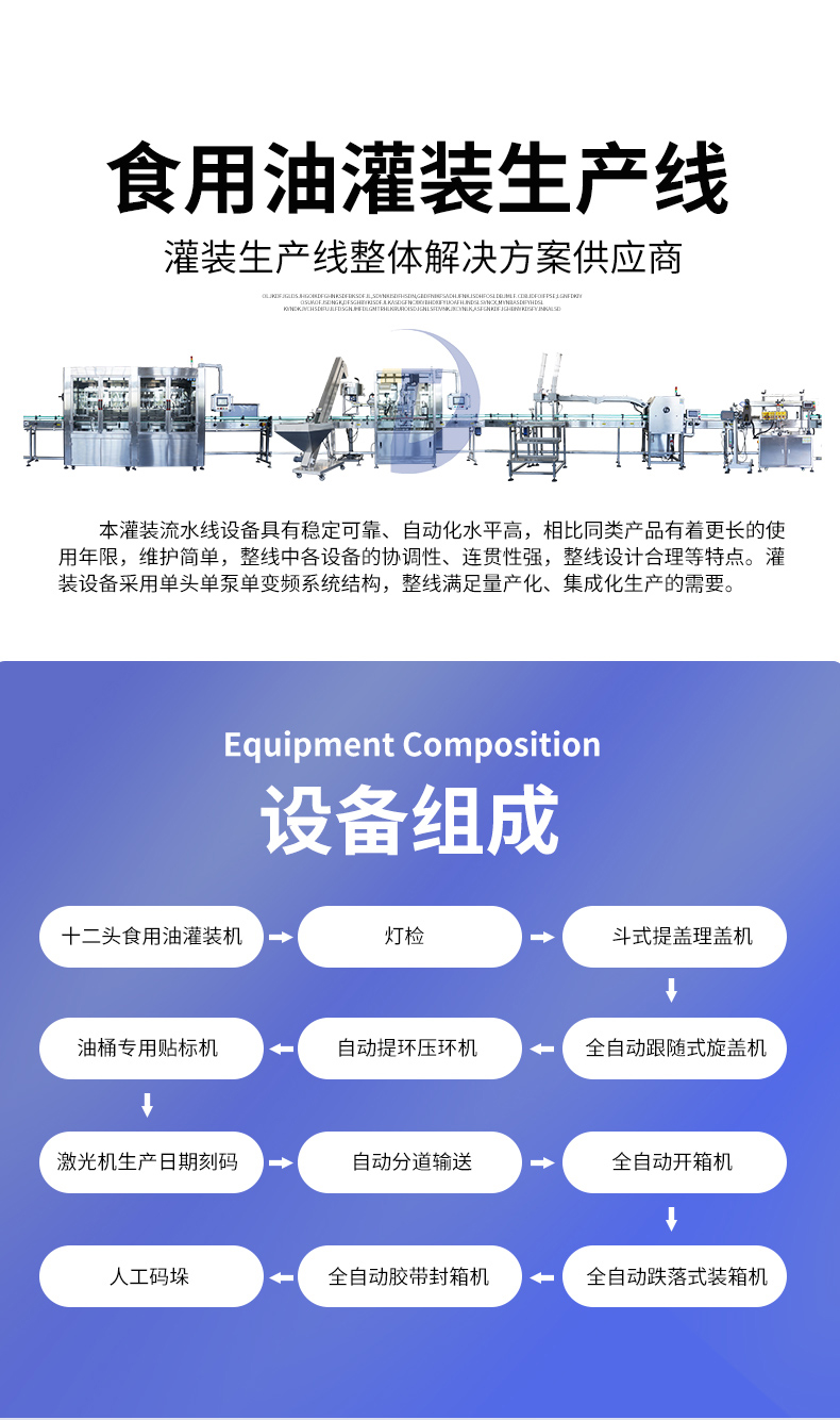 當油桶移動到灌裝頭下方時,灌裝頭會自動啟動,開始進行自動灌裝。在這個過程中,灌裝頭會感應油桶的存在,并根據(jù)設定好的參數(shù)自動進行灌裝。當油桶已經(jīng)達到預定容量后,灌裝頭會自動關(guān)閉,停止灌裝。