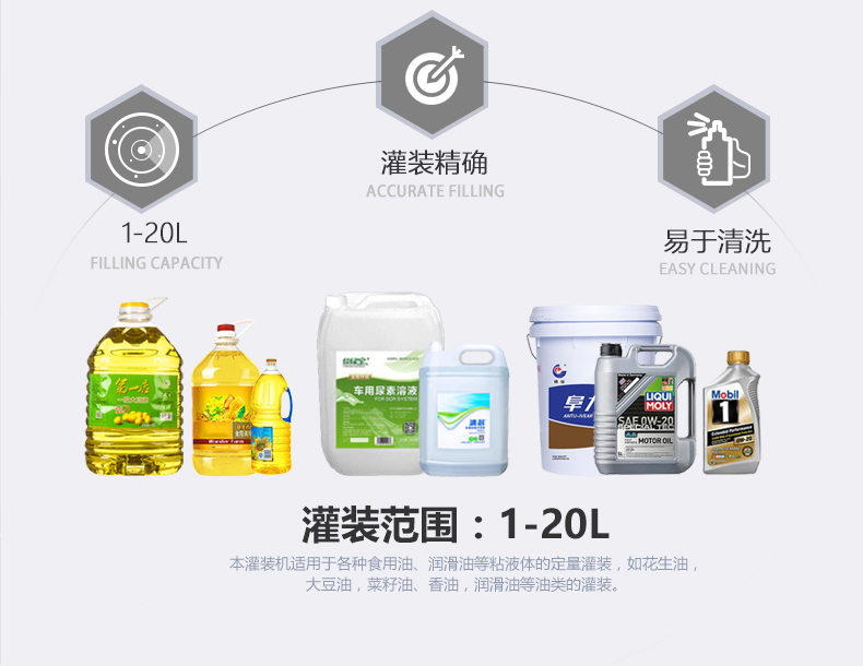 食用油幾乎是每家的必須品,我們平時做菜都離不開食用油,比如我們?nèi)粘J秤玫挠陀姓{(diào)和油、花生油、大豆油、橄欖油等等... 這時候一款合適的食用油灌裝機對食用油制造廠家就變得極為重要,這系列的灌裝機都應(yīng)用了流量計式計量的灌裝原理,榮獲了多項認(rèn)證,能過適用于多種規(guī)格(1-5升)的南瓜籽油、榛子油、牡丹籽油、芝麻油、各種的食用油的灌裝作業(yè)。