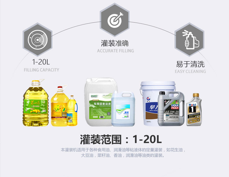 1.灌裝范圍廣---可適用于1-20L物料的灌裝;